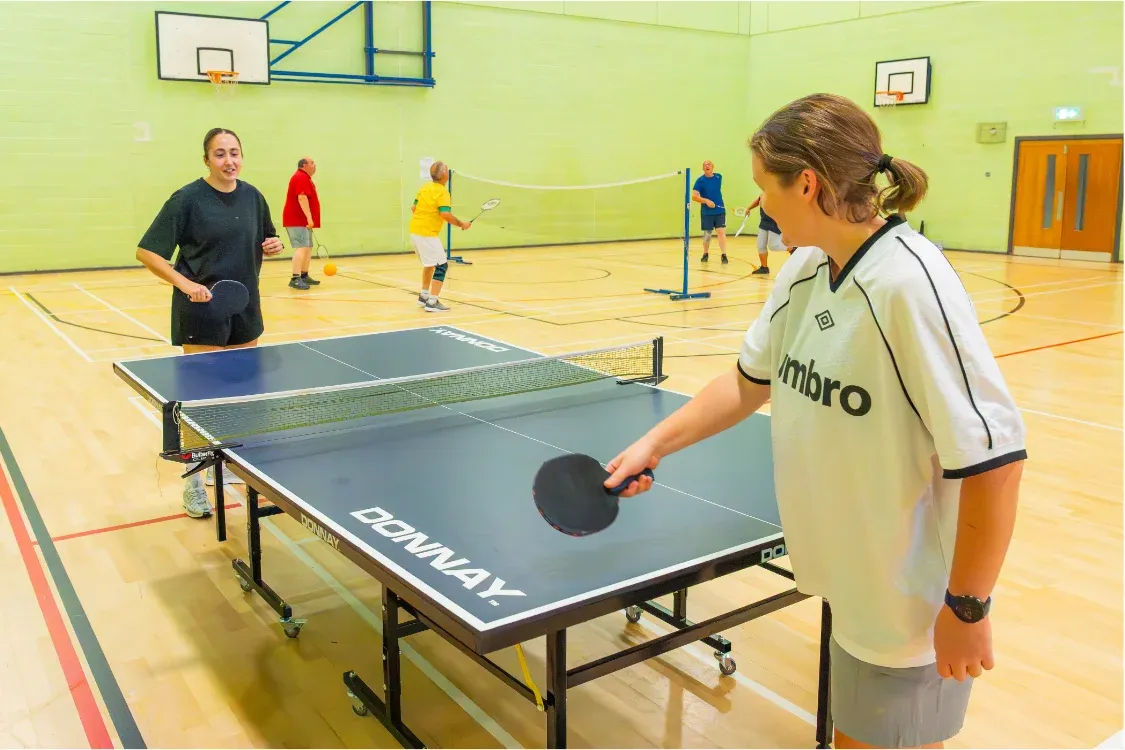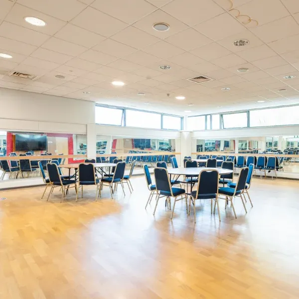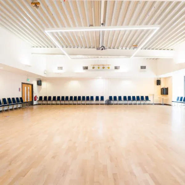 Sports facilities Multi-use sports hall Perfect for large events, the sports hall can be sectioned into smaller areas for sport. Hire costs: Full hall – £36 per hour Half hall – £18 per hour Single court – £9 per hour Outdoor floodlit pitches Four multi-use (MUGA) pitches with floodlights, ideal for all team sports. Available for one-off hourly bookings or block bookings for corporate, adult, or junior teams. Bookings for under 18s must be accompanied by an adult. Dance studios (x2) We have 2 dance studios that are great for dance and fitness activities. Both have mirrored walls, wooden flooring, and air conditioning. Choose from the Eric Harrison Dance Studio on the first floor, and Jimmy Egan Dance Studio on the ground floor. Party, meeting and conference facilities Park Suite A flexible room for meetings, events and celebrations. It seats up to 120 guests at round tables or 200 theatre-style. Hire is £36 per hour, available weekdays 9am–4:30pm and Saturdays until 3:30pm. Includes an 85″ TV, PA system, free Wi-Fi, air conditioning, a lectern, chair covers, tablecloths and décor. Boardroom An executive meeting room with flexible layout, large TV screen for presentations, free Wi-Fi access, and air conditioning. Suitable for 18 people in a board meeting layout. Interview rooms Cosy spaces suitable for one-to-one or small meetings. Lounge A comfortable and relaxed breakout space, available to use with hire of the Park Suite, £16 per hour.